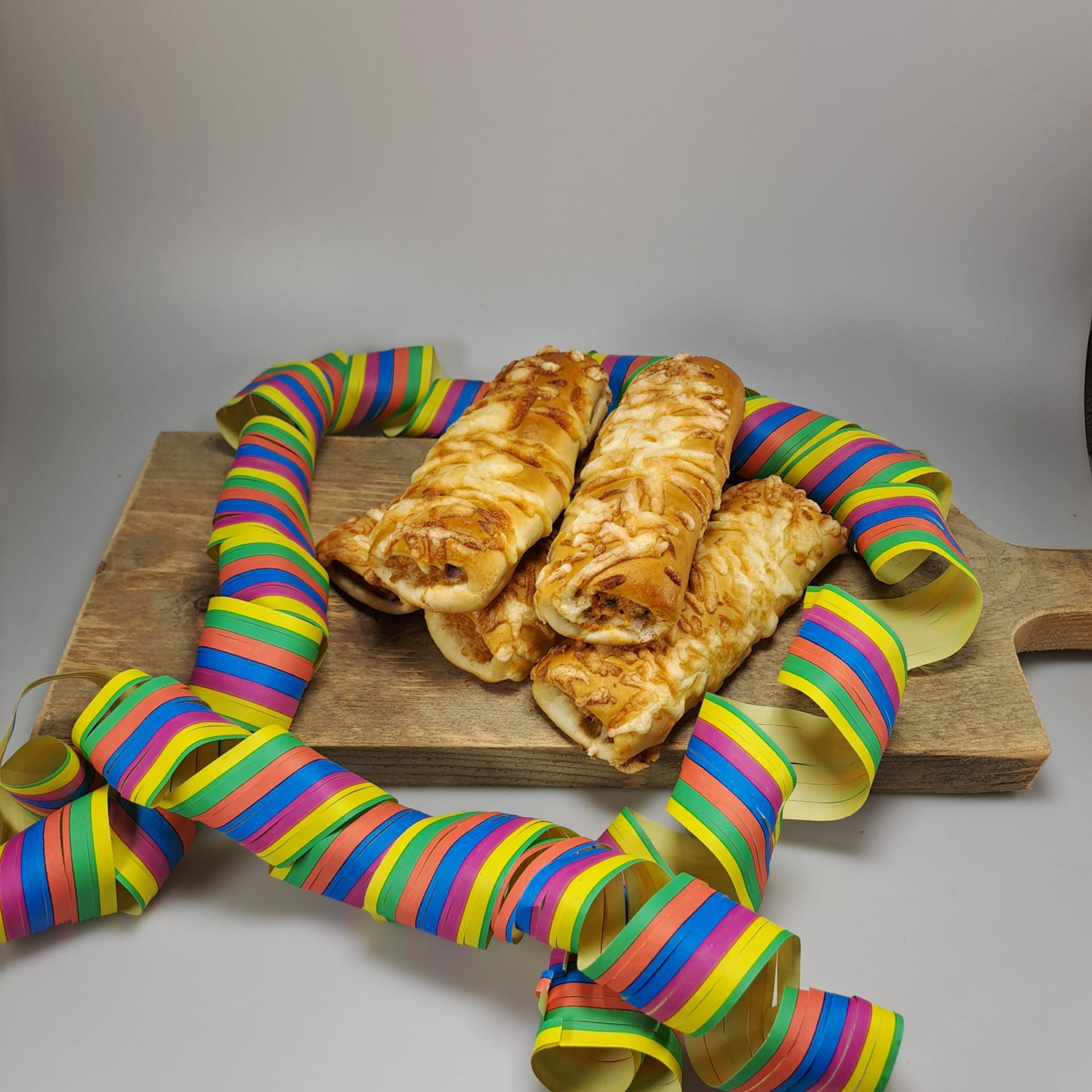 Mi stróganòfgehakt, roeëj unj èn afgewérkt mi geraspte kieës Let op!! Alleen verkrijgbaar carnavals vrijdag en zaterdag