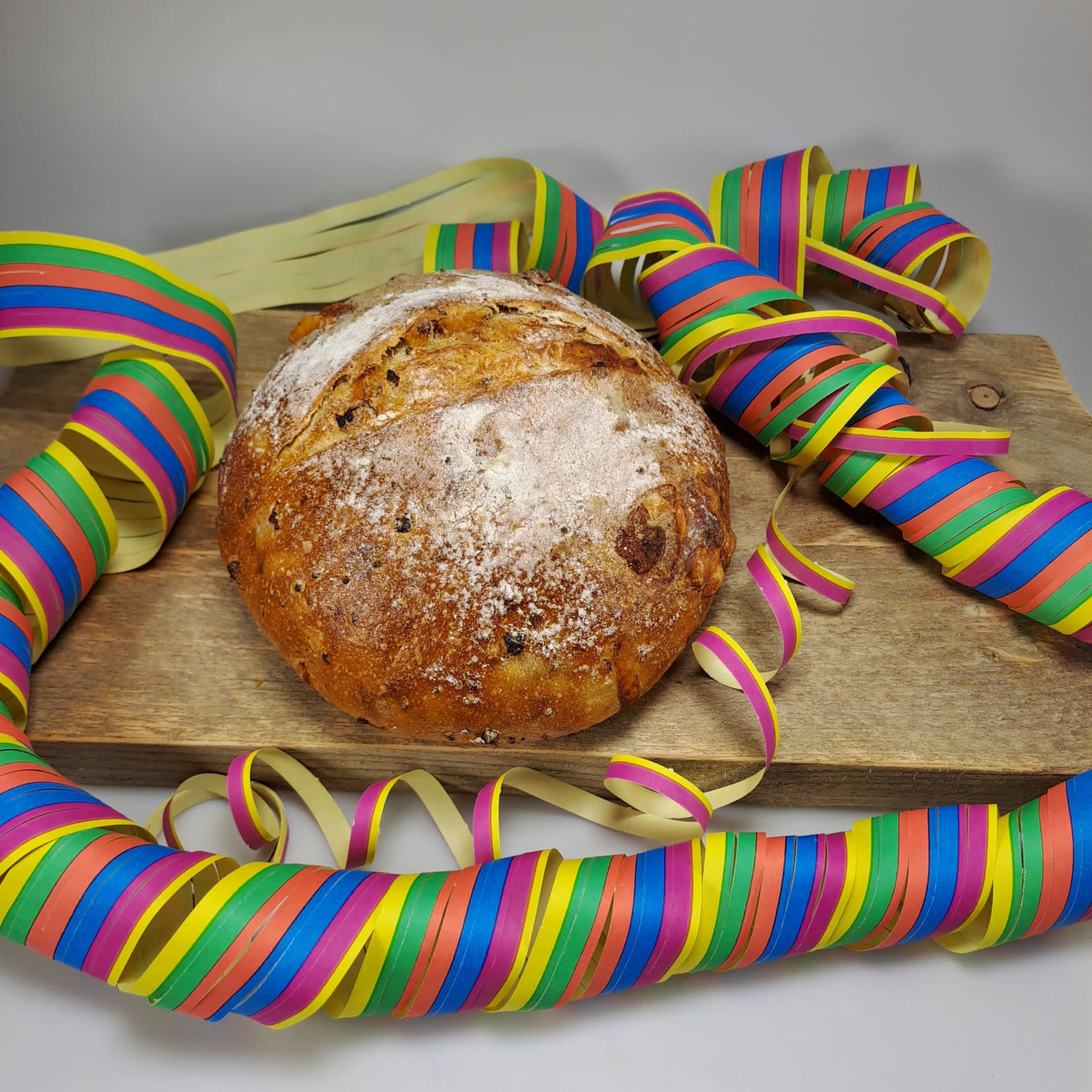 Zacht broodje gevuld met krenten en rozijnen.